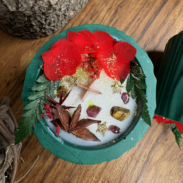 Fruit d’une collaboration entre Les Lueurs Magiques et Le Temple Maïa, nous vous présentons la Bougie Tattoo «Lueur Maïa». Vous connaissez sûrement le concept de la bougie parfumée qu’il faut laisser se consommer pour découvrir un bijou ? Découvrez notre bougie magique qui renferme une réduction sur un tatouage ou un tatouage offert. Cadeau possible : 5% sur un tattoo, 10% sur un tattoo, 15% sur un tattoo, un tattoo de 50€ offert, un tattoo de 100€ offert. Aurez-vous de la chance ? Cire de soja végétale, fleurs séchées et véritables pierres naturelles, cette bougie est très décorative et super ludique. Son doux parfum typique des fêtes de fin d’année vous transportera. Les bougies étant fabriquées à la main de légères différences peuvent apparaître d’un modèle à l’autre. Le bon de réduction ou la remise est valable dans l’année de l’achat de la bougie. Comme toute bougie, on ne la laisse pas allumer sans surveillance.(@les.lueurs.magiques on Instagram)